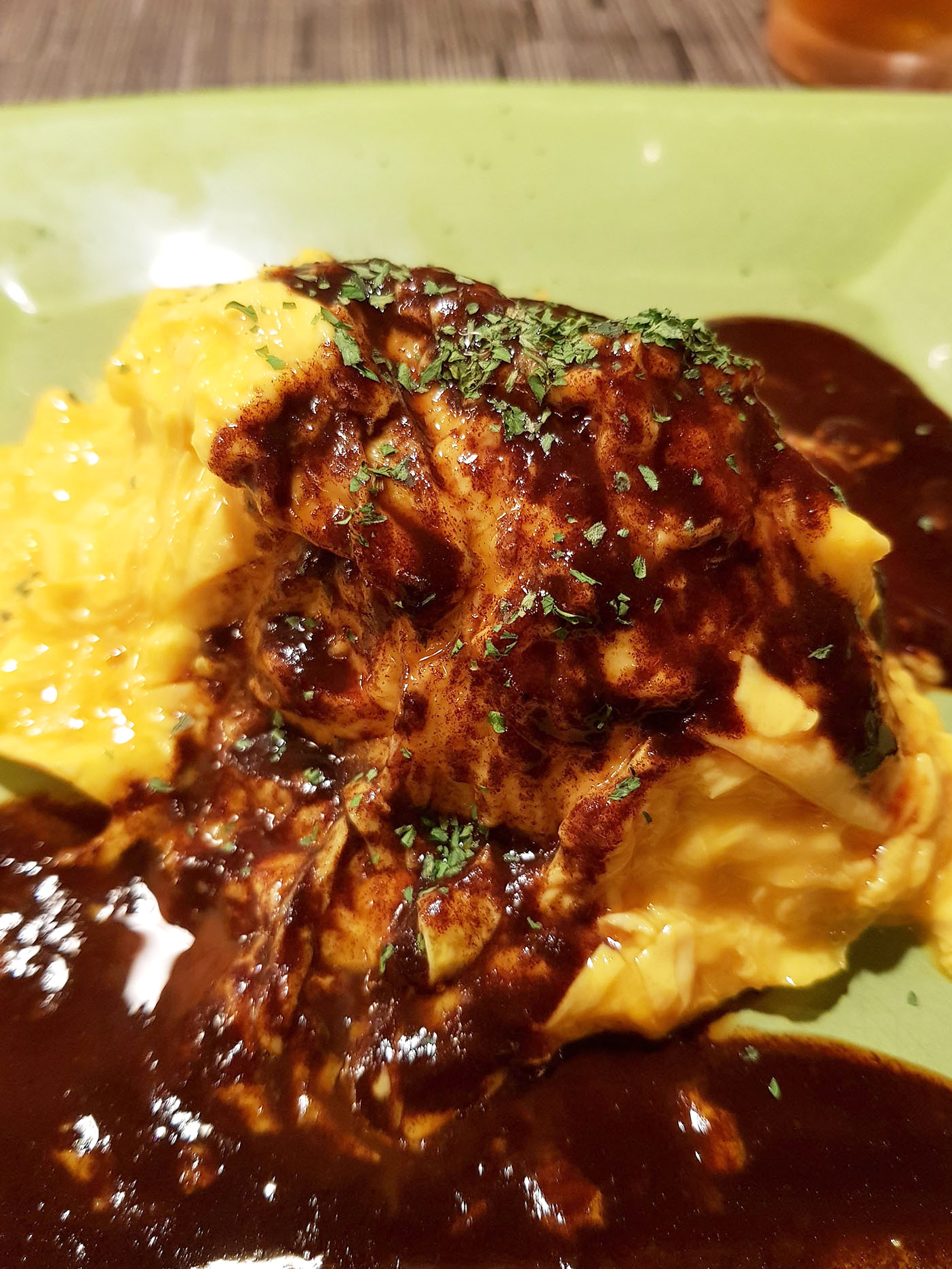 There are multiple dishes on the menu. And even for the signature Kichi Kichi Omurice (a.k.a. Fluffy Open Omelette over the Fried Rice), there’s the regular size and the half size. You’ll see that Chef Motokichi has special molds for the rice. The fried rice for regular size is placed in the silver mold, and for the half size, the fried rice is fitted into the red mold. The omelette is sooo nice and runny, and there’s ample sauce served over the omurice 😍!
