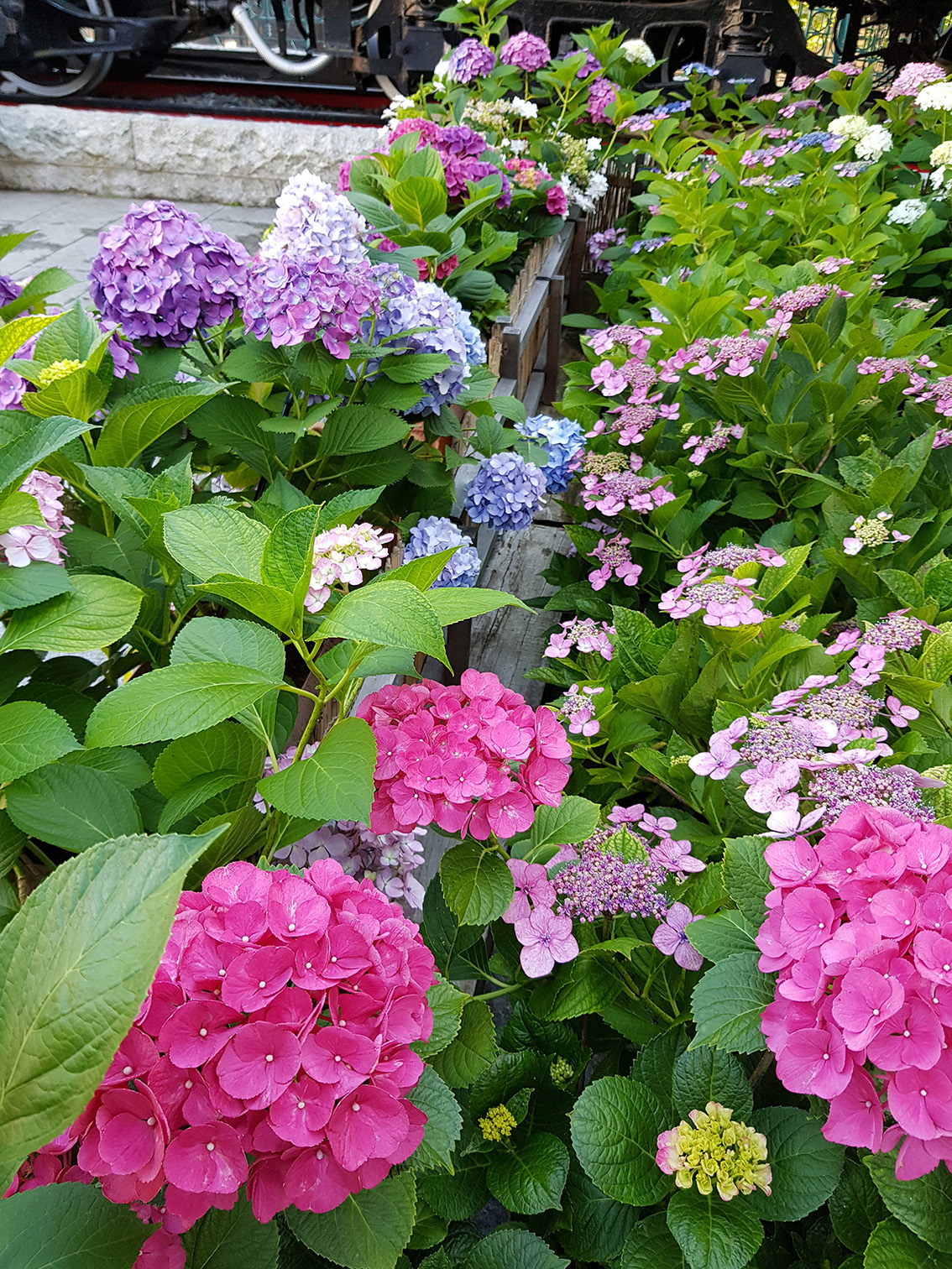 In the outdoors area of Torokko Saga Station (on the left as you enter the premises), there’s a locomotive display with lots of pretty flowers around~