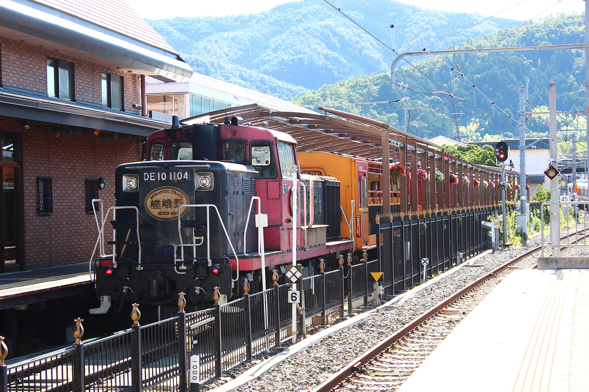 So close to each other, that you can see the building and Romantic Train & rail from the platform of the JR Saga Arashiyama Station!
