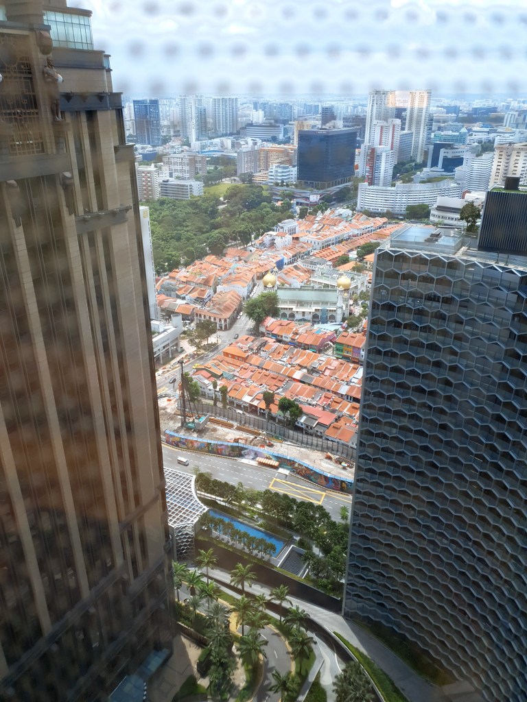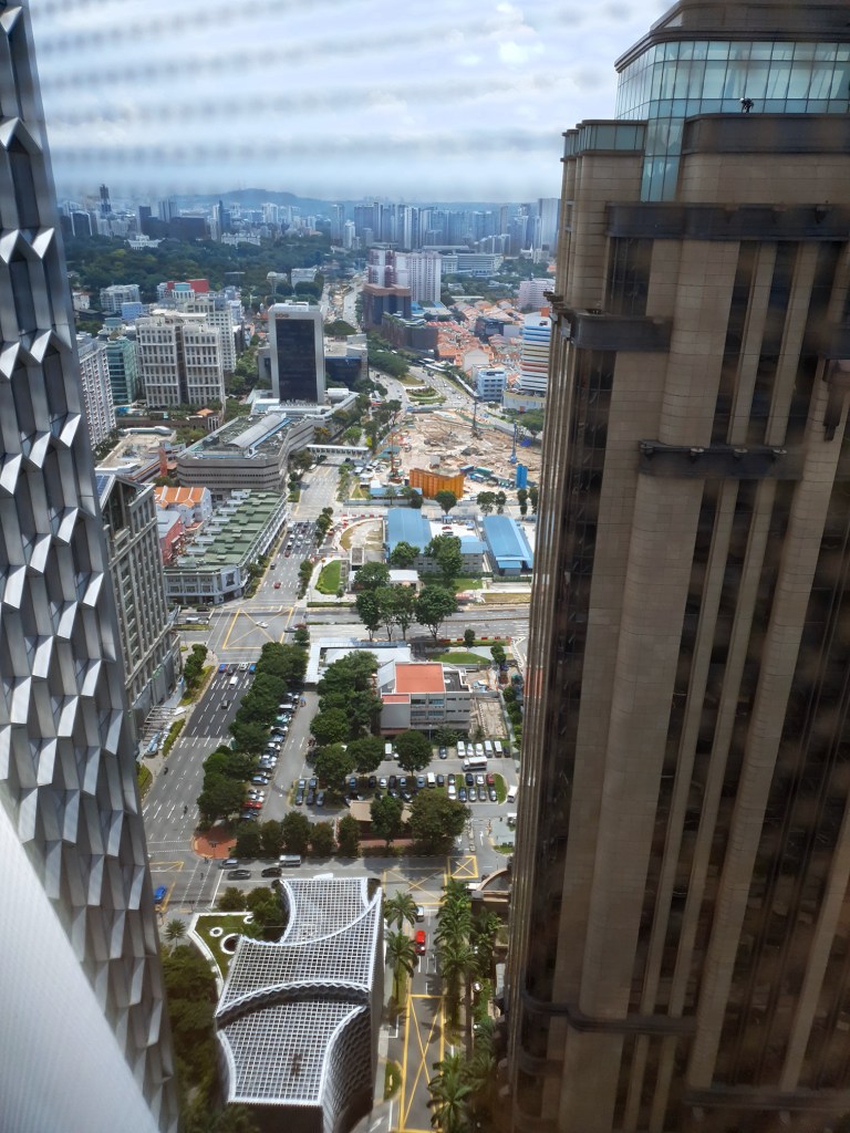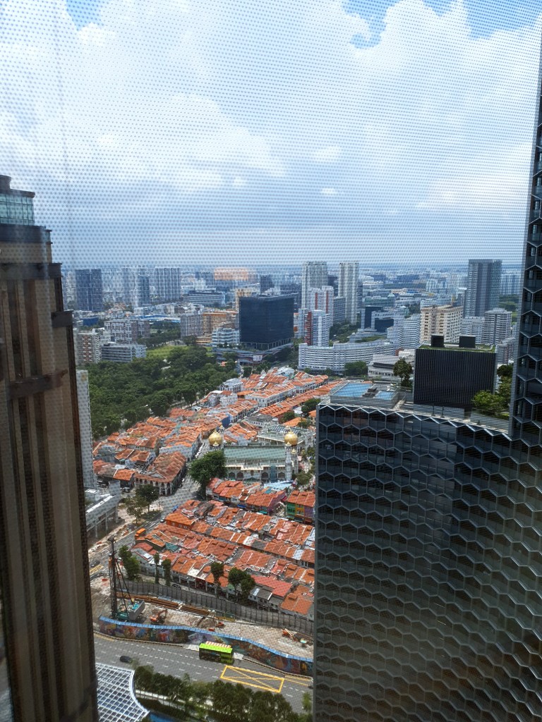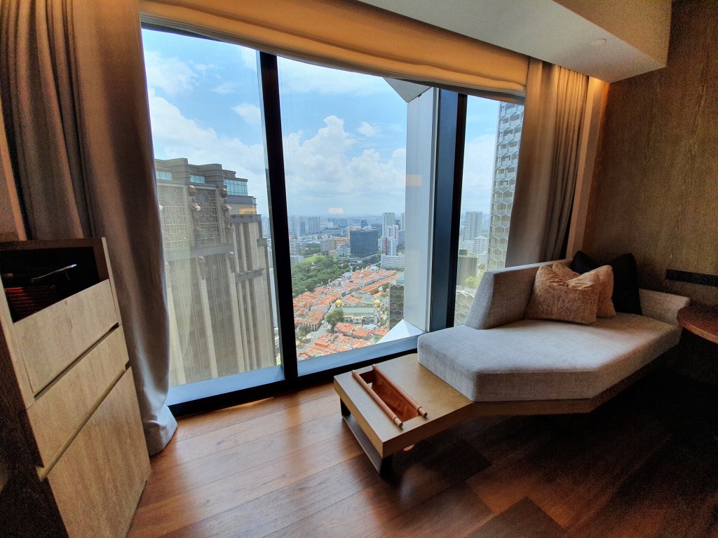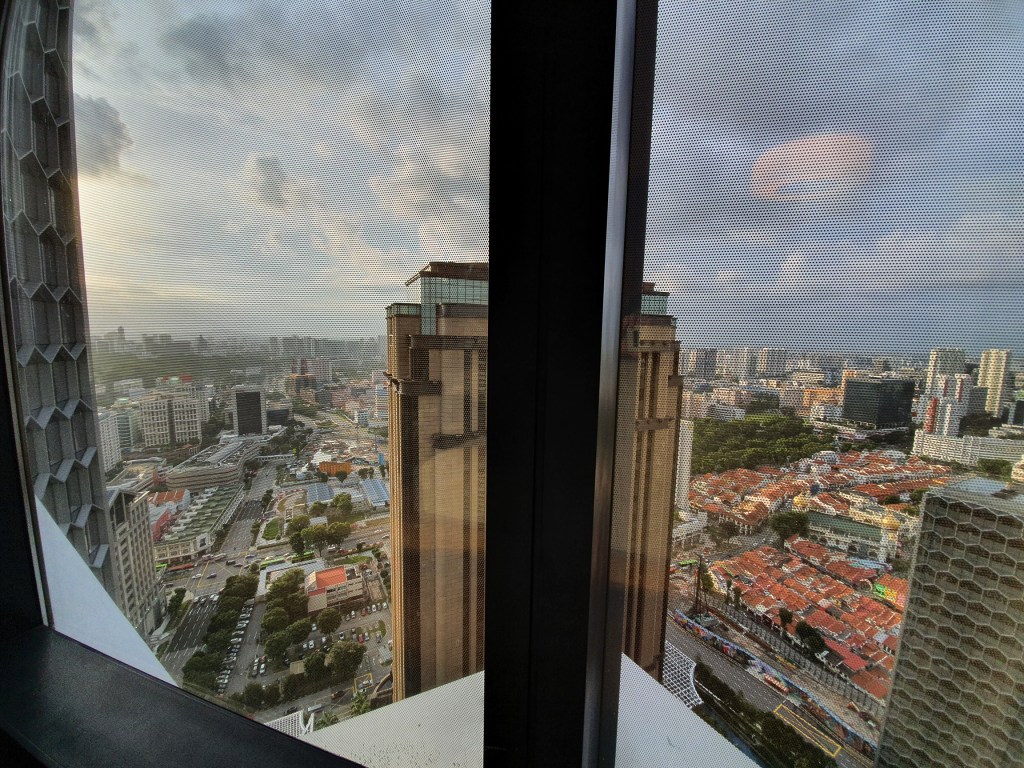The view is great! The room I got was on the 30th floor, facing the Batman/Gotham building. If you got a room on the other side of the hotel, you would be able to see the Marina skyline instead 😀 Oh you’ll notice that there are dots on the window based on the photos below – they’re from the window stickers (I guess to maintain some levels of privacy from the neighboring building while letting guests enjoy the view).