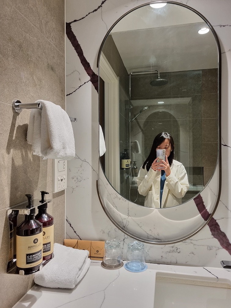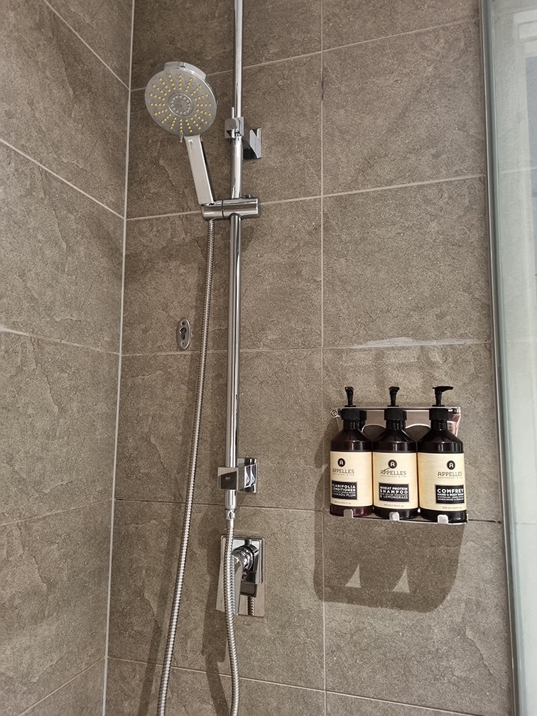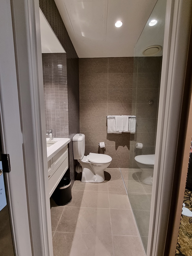 The bathroom is comfortable enough for 1, but will be squeezy for 2. The lights operates on a motion-sensor, and automatically switches off after awhile (not sure if it was 10mins or so). The sensor seems to only be at the sink area, shower area not included 😅 So the lights went off halfway through my shower a couple of times 😅😅