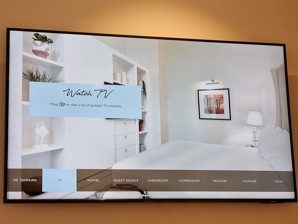 The big TV can be connected to via Google Cast, and also provides access to local TV channels.
