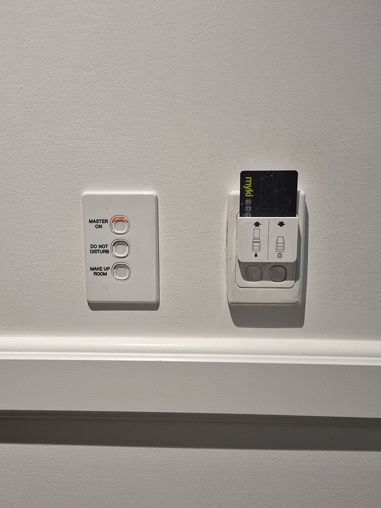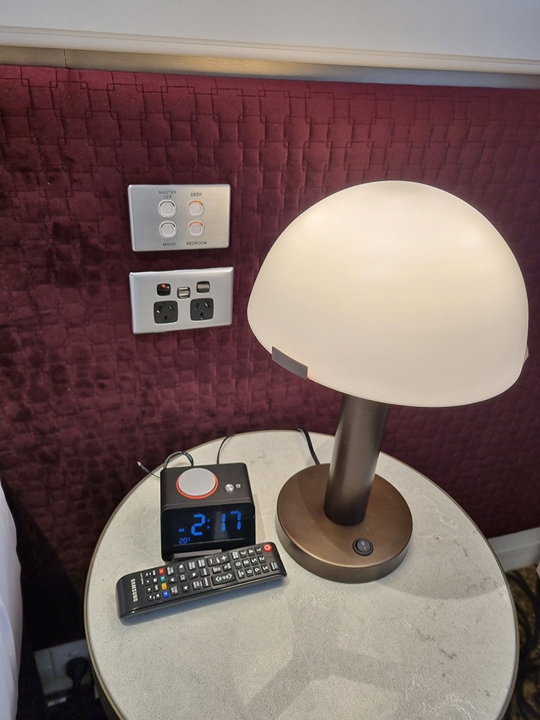 All plugs are AU plugs (no international power plugs), and master switches can be found next to the bed.
