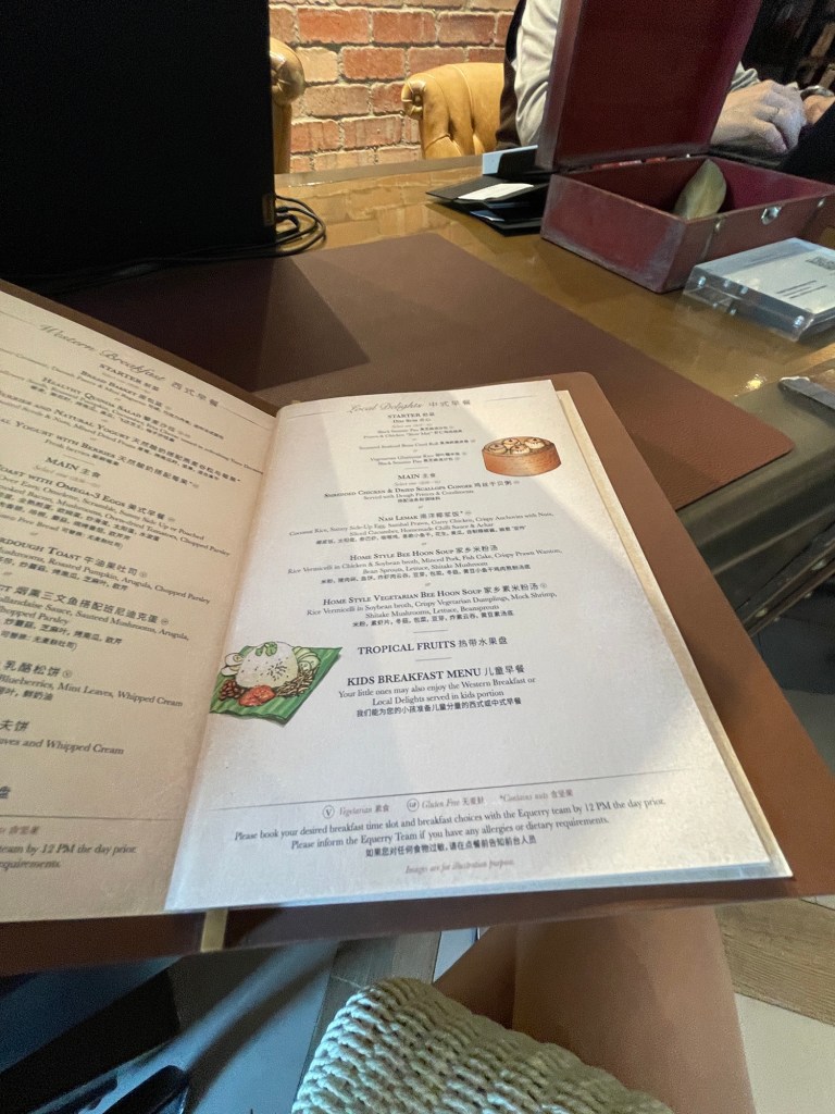 Breakfast for two came with the room, and is served at The Living Room. There are two options for the breakfast – Western or Asian. You’ll be asked for your breakfast choice upon check-in/the day before, so that the hotel is able to prepare as needed. Each option comes with a starter, a main course, and a fruit platter for dessert. Kids meals are also available in both Western or Asian meals.