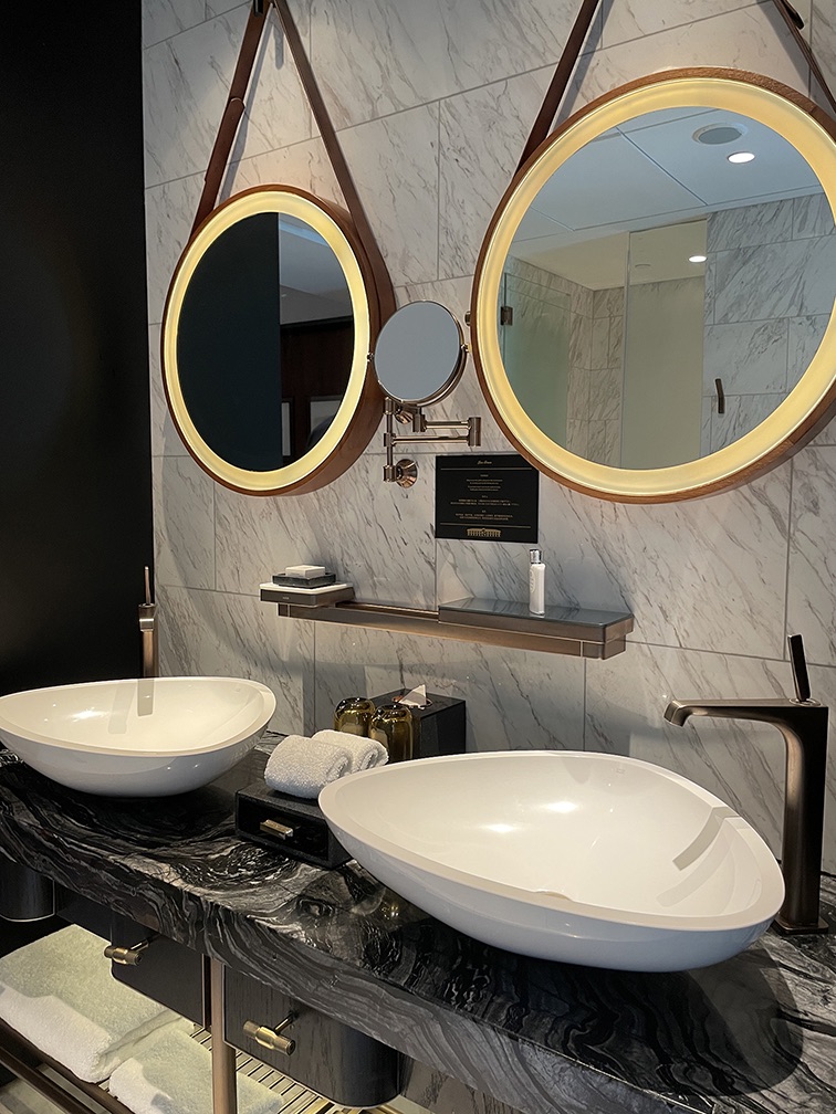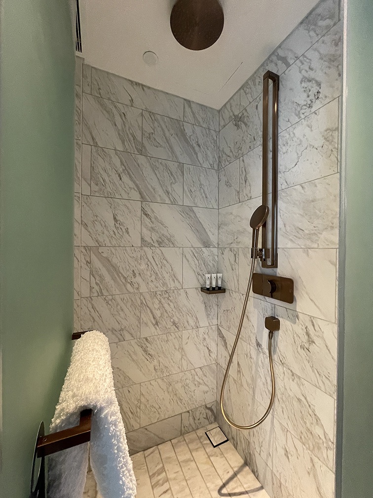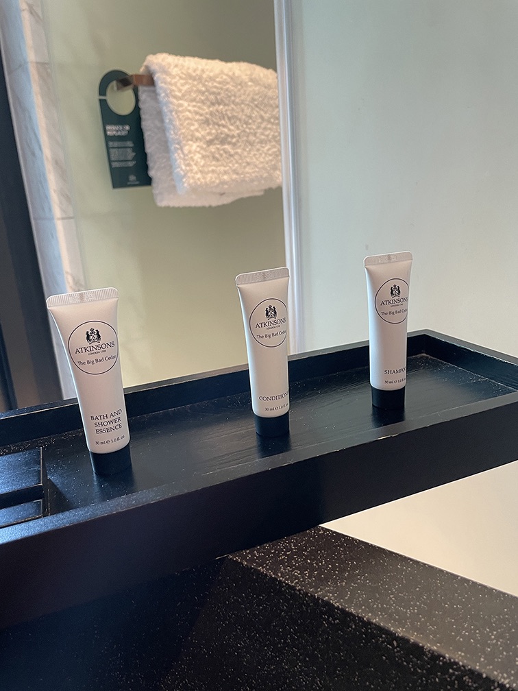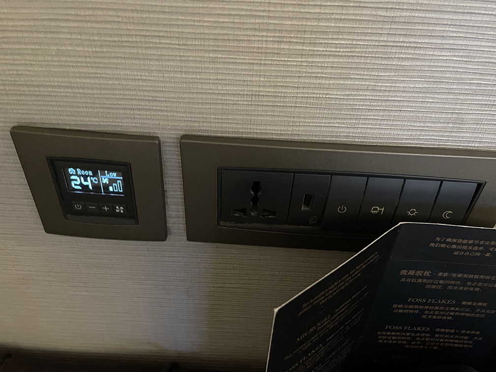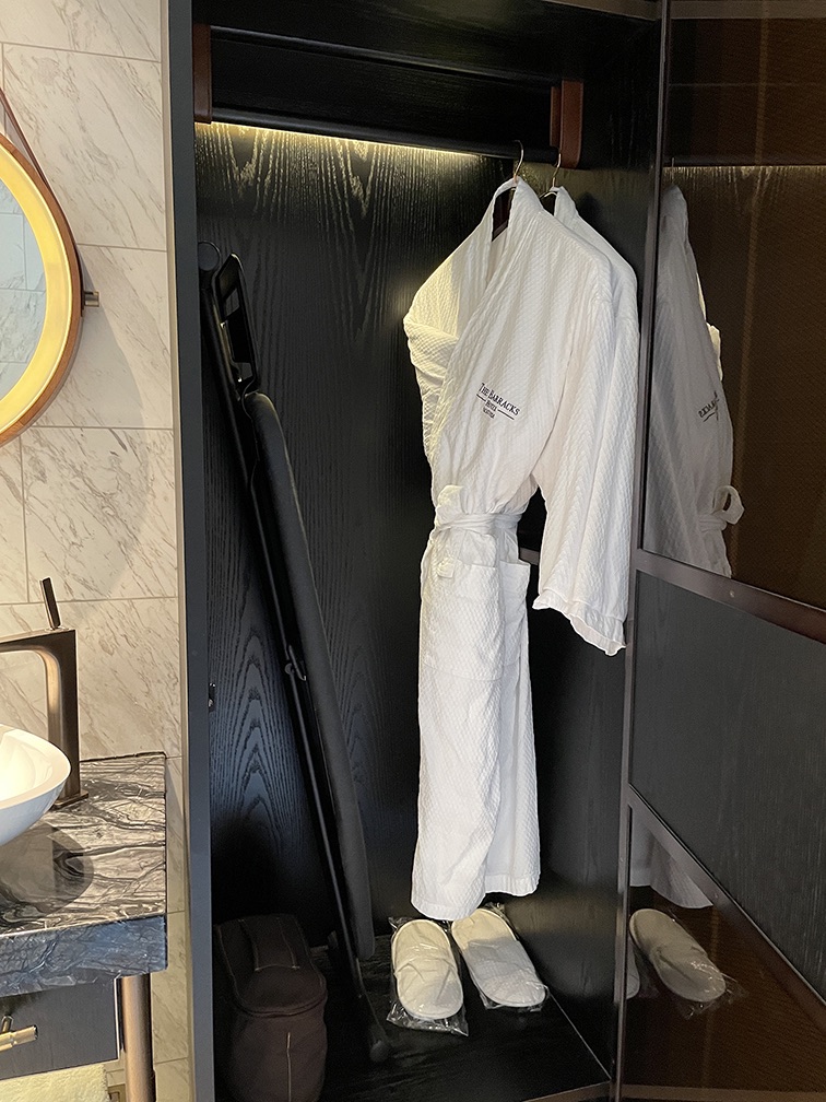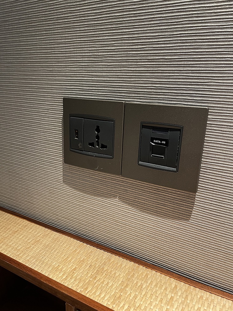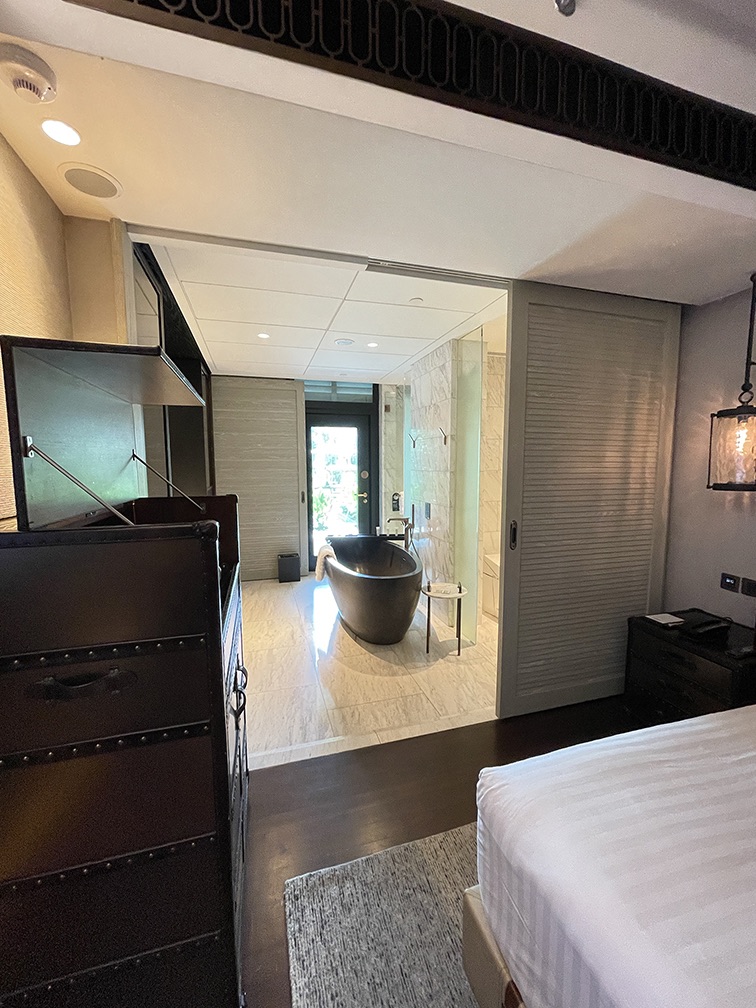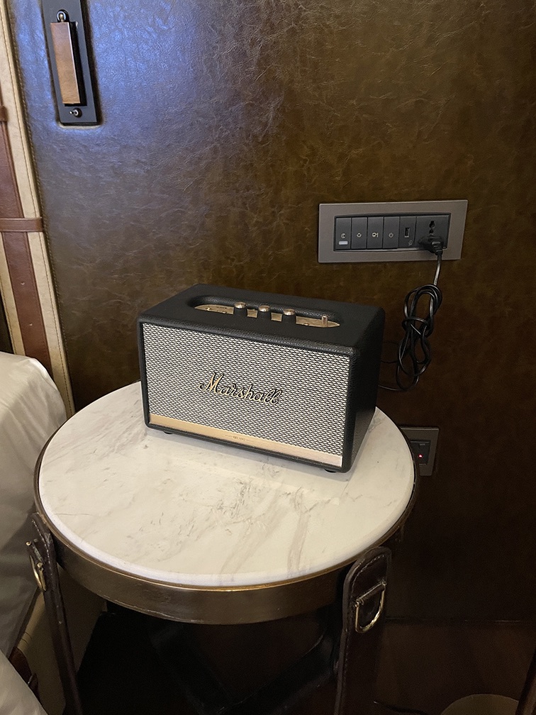 Note that the AC plugs in the room are all fitted with international plugs – so no need to bring your own. Wifi is provided (password given upon check-in). On either bedside tables, you can find the controls for the lights and air conditioning, the telephone, and a set of Marshall speakers.