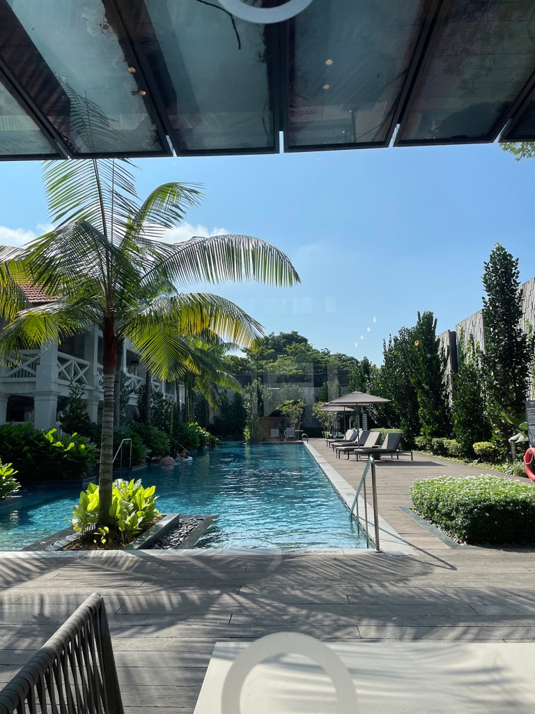 I didn’t have a chance to check out the gym but apparently it’s located in The Village Hotel Sentosa (most of the hotels nearby are related brands). The pool is great though! There are beach towels available at the side, and plenty of beach chairs along the length of the pool. The place is very well maintained and you can also take a seat at the side of the pool and soak your legs in, without getting your bottoms wet.