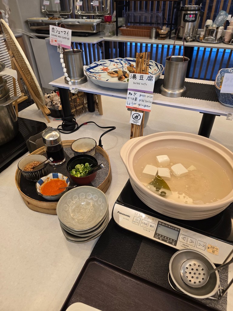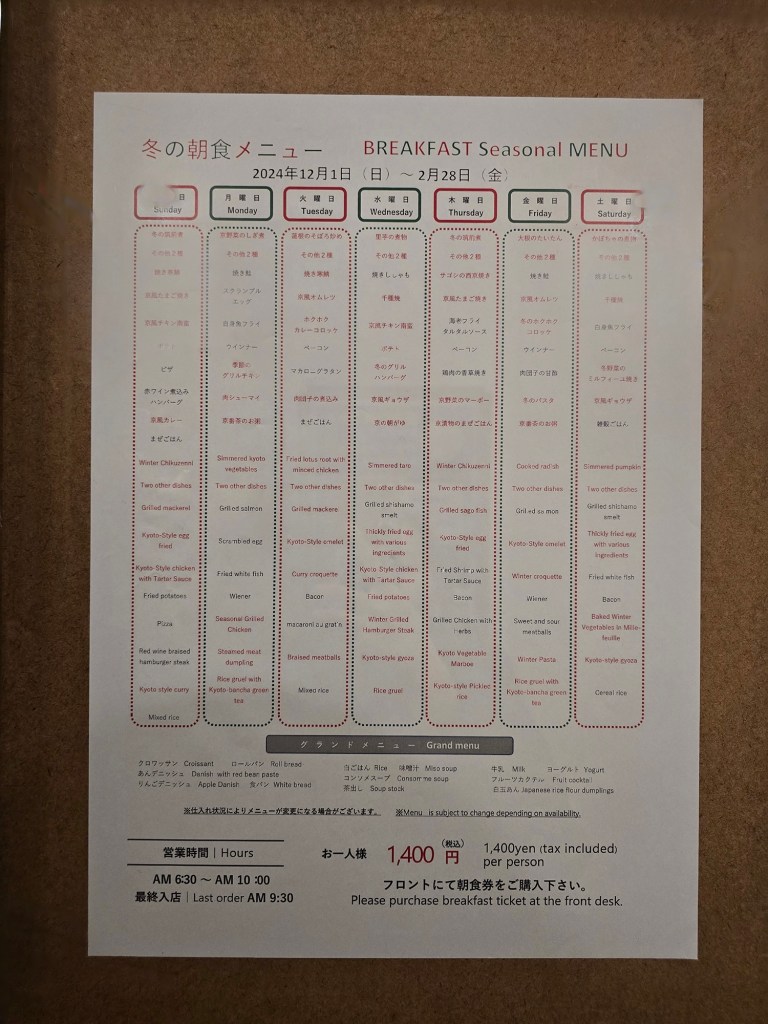 There is a seasonal menu that is set and displayed around the hotel, including in the lift, at the front desk, and in front of the hotel’s restaurant. They do have the daily menu in Japanese, English, Korean and Mandarin. There is also a sign in the restaurant that a vegetarian menu is also available!