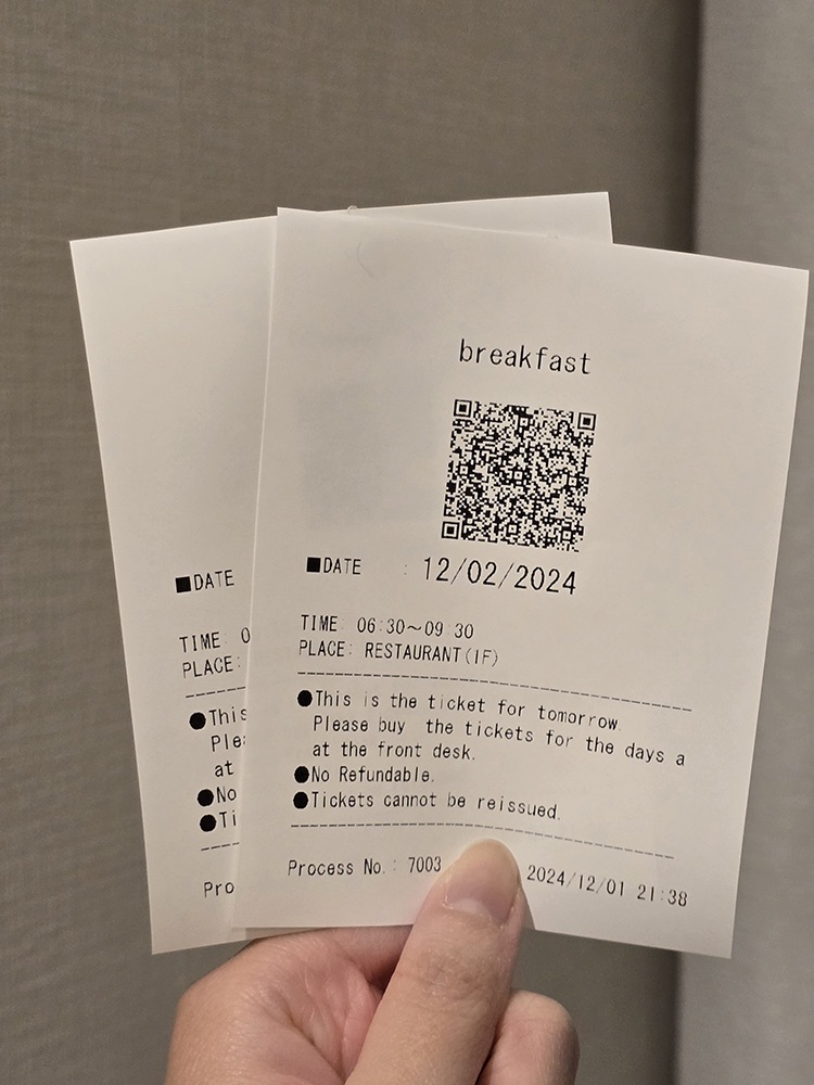 Breakfast tickets can be purchased at the self-service kiosk in the hotel lobby (note that transactions are cashless!). Breakfast is served in the hotel’s restaurant, also located at Level 1.