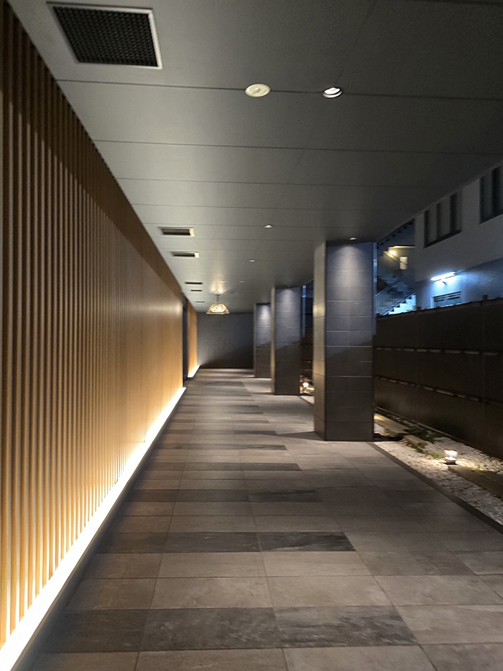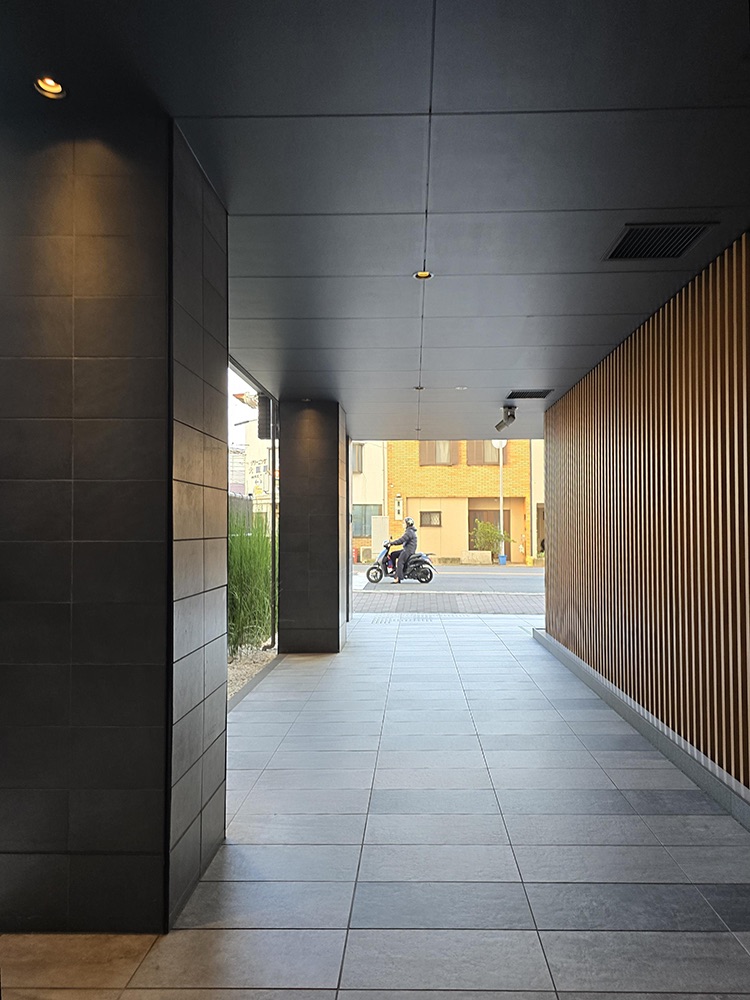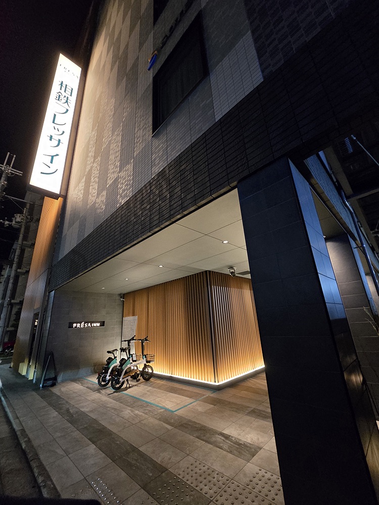 Once you past Lawson, the hotel will be on your right. There may be some e-scooters parked outside, in front of a really nice wooden facade (especially at night). This is the hotel!