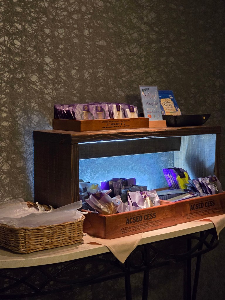 There is also an amenity shelf at the hotel lobby, where you can get hair brushes, hair ties, hair claw clips (YES, and they’re the big ones!), dental kits, sponges for mani/pedi, foot refresher sheets (those adhesive patches with menthol that can be used for your feet, legs, neck, etc), and many more.